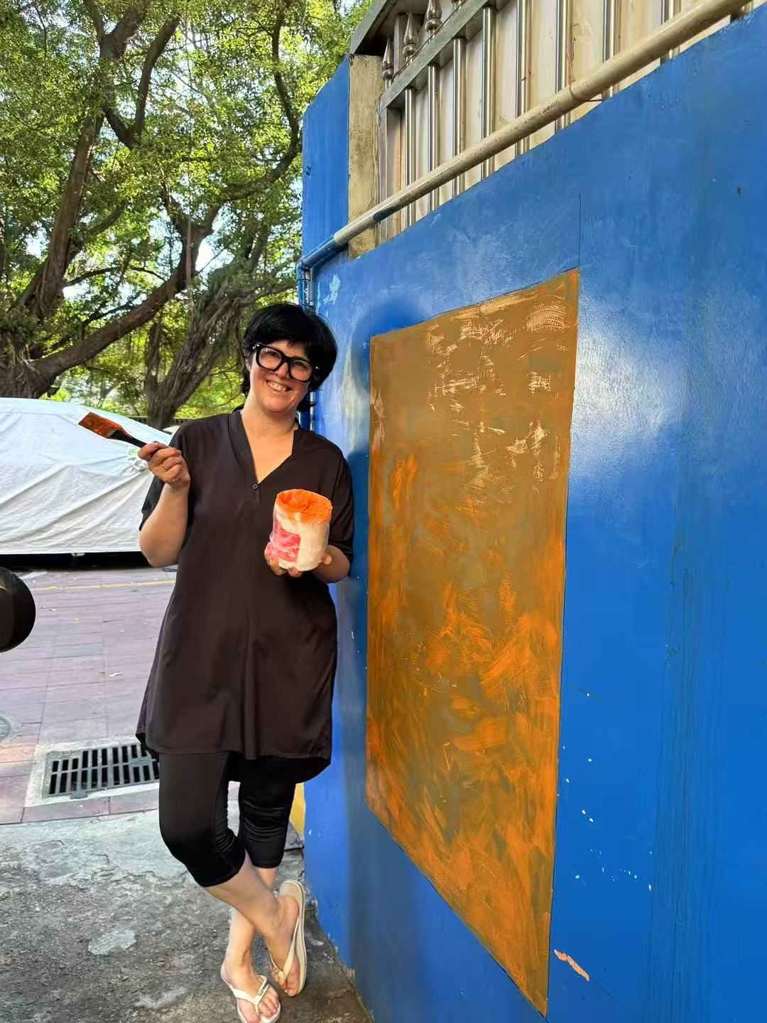 Em 26 de junho, Majó podia ser vista pintando um impressionante cenário de peônias vermelhas em um mural azul em uma viela estreita perto da Rua Huaguo. Apesar do calor do verão, do zumbido dos mosquitos e das chuvas ocasionais, a artista trabalha incansavelmente, com o suor escorrendo pela testa, sem se importar com as motonetas que passavam enquanto ela delicadamente dava vida às pétalas das flores.