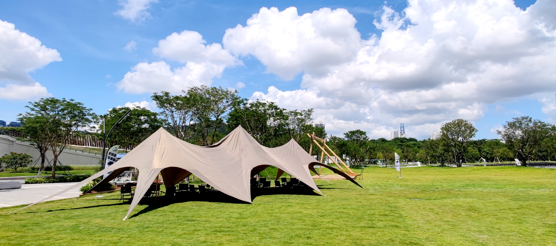 O parque é composto por duas áreas: a área sul e a área norte. A área sul é principalmente destinada a atividades de lazer ao ar livre e camping. Ocupando uma área de cerca de 65 mil metros quadrados, a área sul do parque também permite que os moradores participem de exposições, assistam a shows e joguem futebol no gramado.