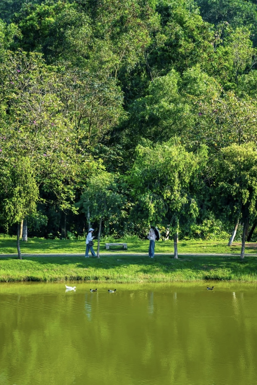 O Lago Yueliang é um dos locais mais visitados do parque. Cercado por árvores exuberantes, o tranquilo lago assemelha-se a um pedaço deslumbrante de pedra de jade. Quando a luz do sol passa pelas suaves brisas que alcançam o parque, a superfície do lago cintila de maneira espetacular. O gramado à beira do lago é um espaço amplo e aberto, fazendo dele um local perfeito para piqueniques, acampamentos ou simplesmente para relaxar deitado. Os visitantes podem desfrutar de um momento de tranquilidade no gramado, ler um livro e saborear suas refeições sem serem incomodados por outras pessoas, já que o parque permanece relativamente desconhecido.
