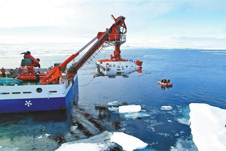 O submarino chinês de águas profundas Jiaolong se prepara para mergulhar em uma zona de gelo do Ártico nesta foto de arquivo de 11 de agosto.